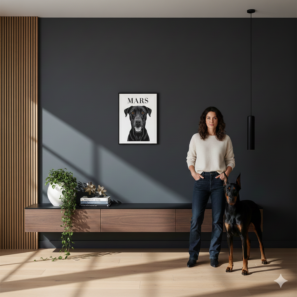Each portrait is printed on museum-grade matte paper, giving your artwork a rich, gallery-quality finish. Our eco-conscious hardwood frames — made from responsibly sourced wood — allow you to showcase your pet’s portrait proudly and guilt-free. With the hanging hardware already attached, it arrives ready to claim its spot on your wall.